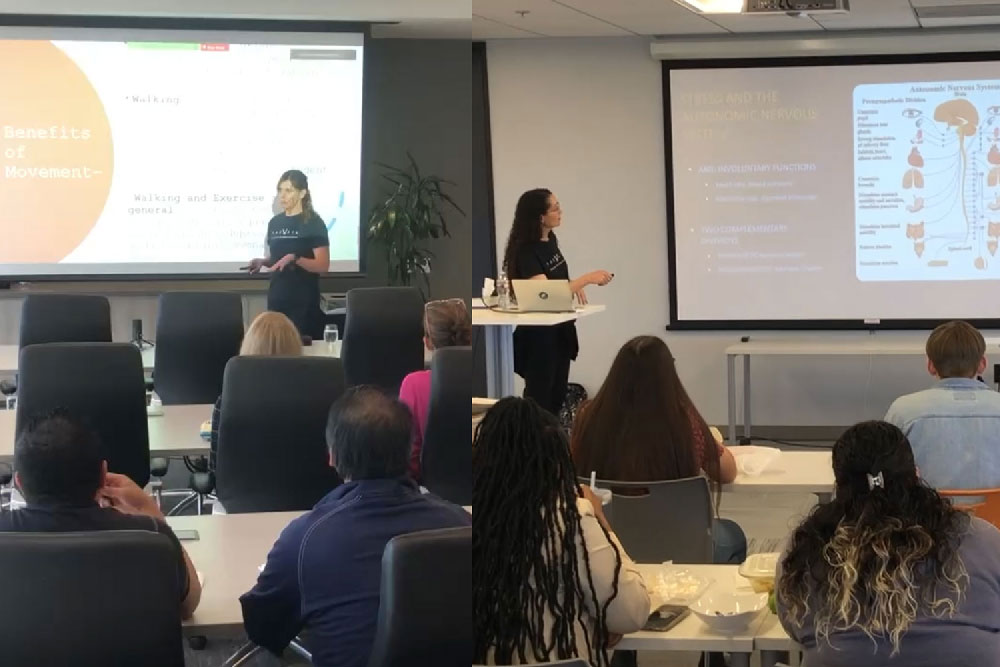 Our corporate wellness program is designed to enhance employee health, boost productivity, and mitigate workplace liability through a comprehensive approach that encompasses education and practical strategies. Centered around the four pillars of exercise, nutrition, recovery, and lifestyle habits, the program delivers tailored content to address diverse needs. We have successfully partnered with nationally recognized companies across various industries—including real estate, health insurance, and the legal industry—providing education that not only supports employee well-being but also meets professional development requirements such as MCLE qualifications. By integrating these core elements, our program fosters a healthier, more engaged workforce while supporting organizational goals.